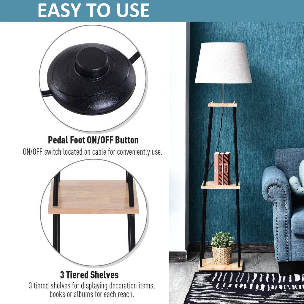 Lampadaire en tissu avec 3 étagères 40x40x160 cm Beige