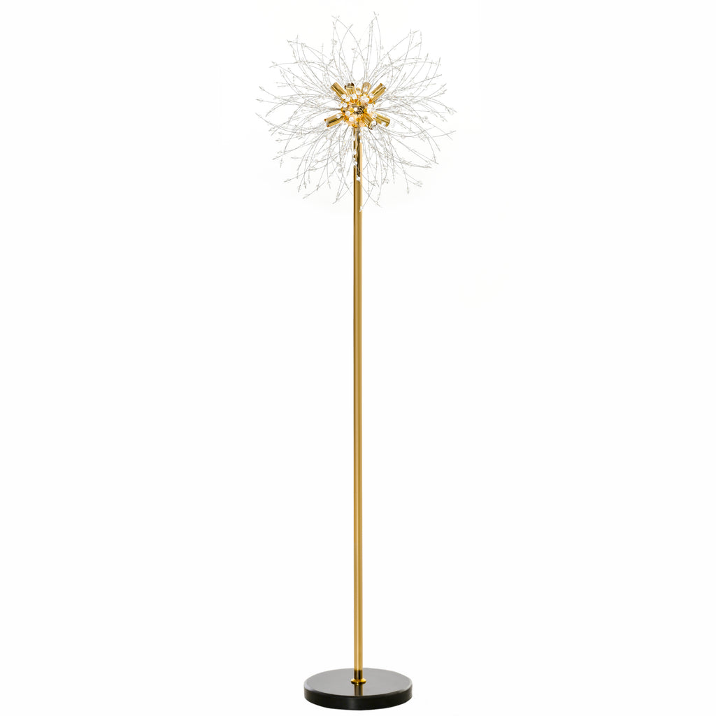 Faites scintiller votre maison avec ce lampadaire ! L'abat-jour en forme de pomme de douche est équipé de nombreux cristaux qui, combinés aux 8 points lumineux, créeront un éclairage efficace dans n'importe quel environnement. Cette lampe moderne est composée d'un cadre en métal doré robuste et d'une base en marbre solide, ce qui la rend stable. Equipé d'un interrupteur au pied pratique, notre lampadaire est parfait pour une utilisation dans le salon, la chambre ou le hall d'entrée.