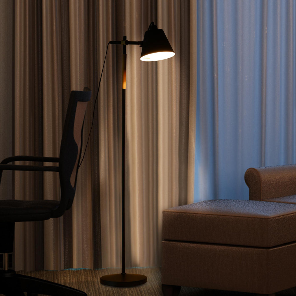 Lampadaire Abat-jour Ajustable en Métal et Bois Noir