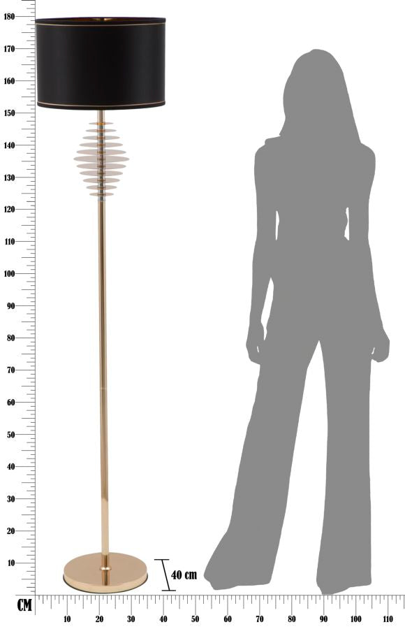 Lampadaire Rond Glam Ø40x180 cm en Plastique Noir et Doré et Fer Polyester