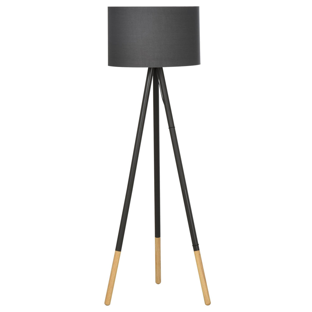 Lampadaire Trépied en Bois avec Abat-jour Gris E27 Ø52x153 cm