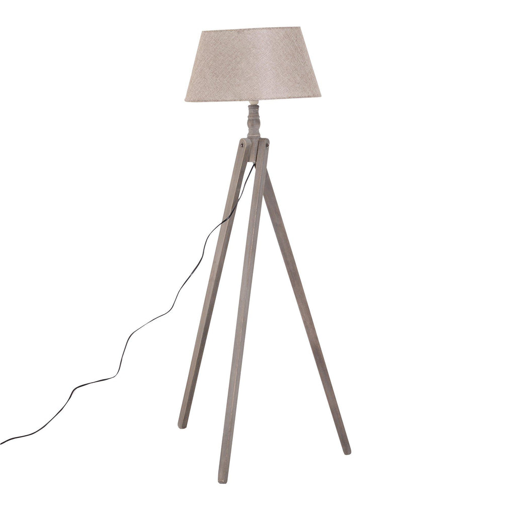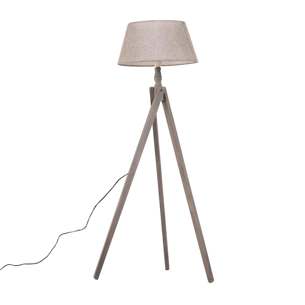 Lampadaire trépied en bois et abat-jour en lin beige 146 cm