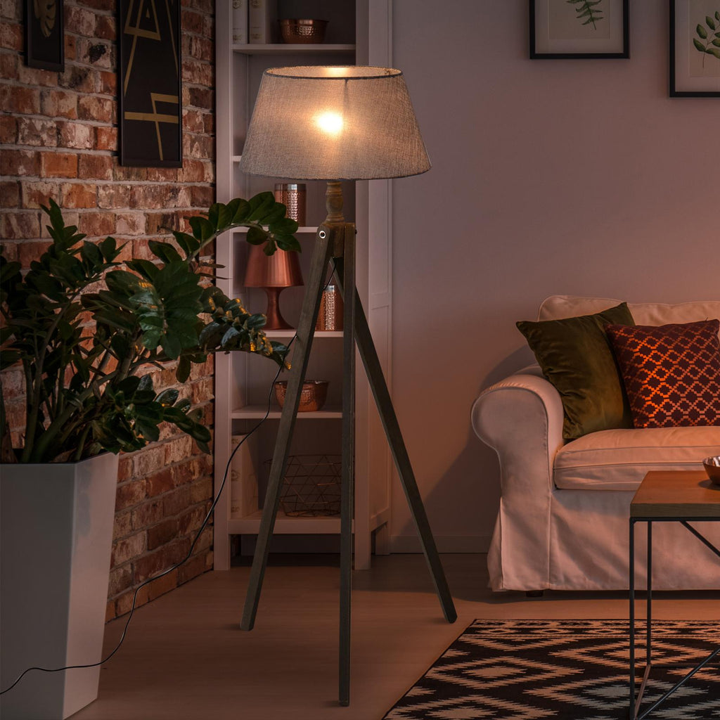 Lampadaire tripode en bois et abat-jour en lin beige 146 cm
