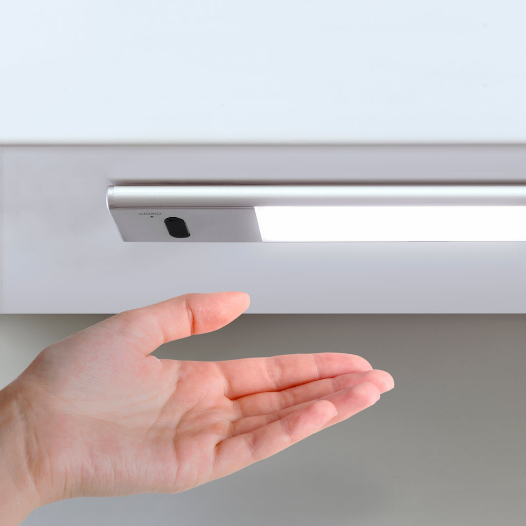 La lampada LED Kaus è progettata per l'illuminazione di cucine e armadi senza necessità di cavi, con un elegante design extra-sottile in alluminio. Questa luce a LED ti permette di illuminare l'interno degli armadi, il piano di lavoro della cucina o i corridoi di casa, con un colore bianco caldo, naturale oppure freddo, poiché consente di variare la temperatura di colore. Si tratta inoltre di una lampada dimmerabile &gt, con cui puoi aumentare o ridurre il flusso luminoso.