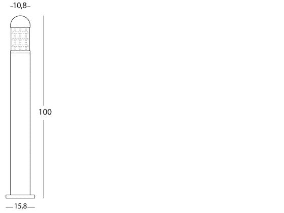 Borne haute pour jardin de couleur grise pour ligne torche extérieure. Structure entièrement en aluminium moulé sous pression. Traitement anticorrosion avec peinture en poudre époxy. Diffuseur en verre transparent et ailettes à lamelles. Dispositif de connexion étanche, joint en silicone et accessoires de fixation. Douille en porcelaine avec douille E27. Convient aux lampes à incandescence et à économie d'énergie. Lampe non incluse. Alimentation 230V ~ 50Hz. Classe de protection : IP44 Puissance maximale de la lampe : 60W