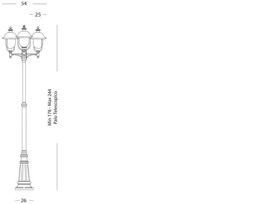Lampadaire pour Jardin Haut Trois Lumières Gris et Cuivre Ligne Extérieure Rustica Sovil