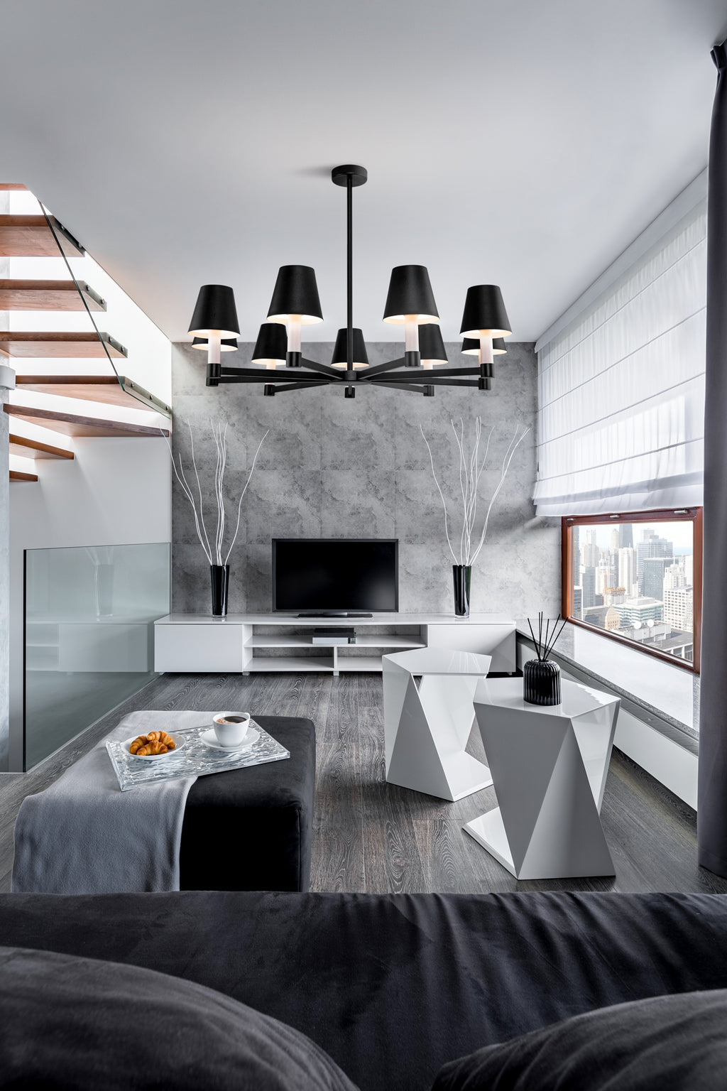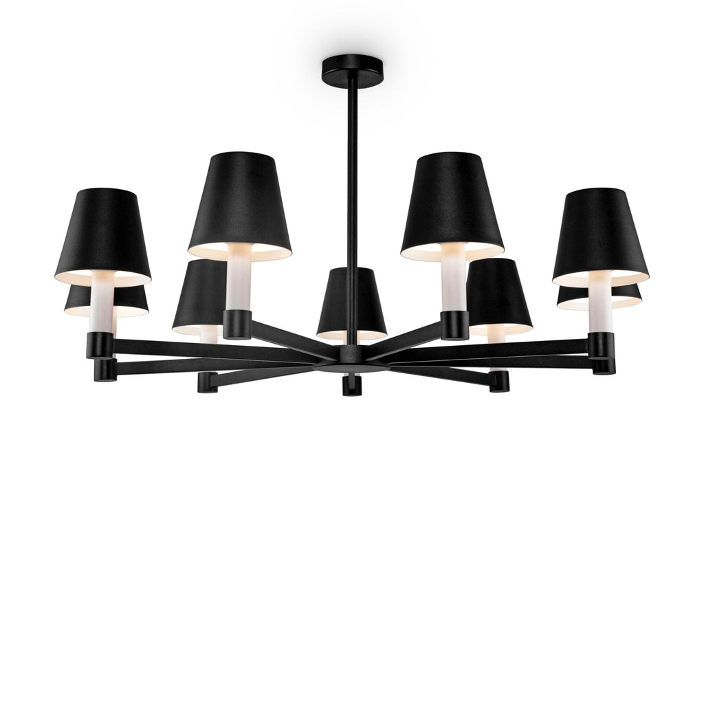 La structure en métal noir. Les diffuseurs en métal noir. La série comprend des appliques et des plafonniers à 5, 7 et 9 lumières.