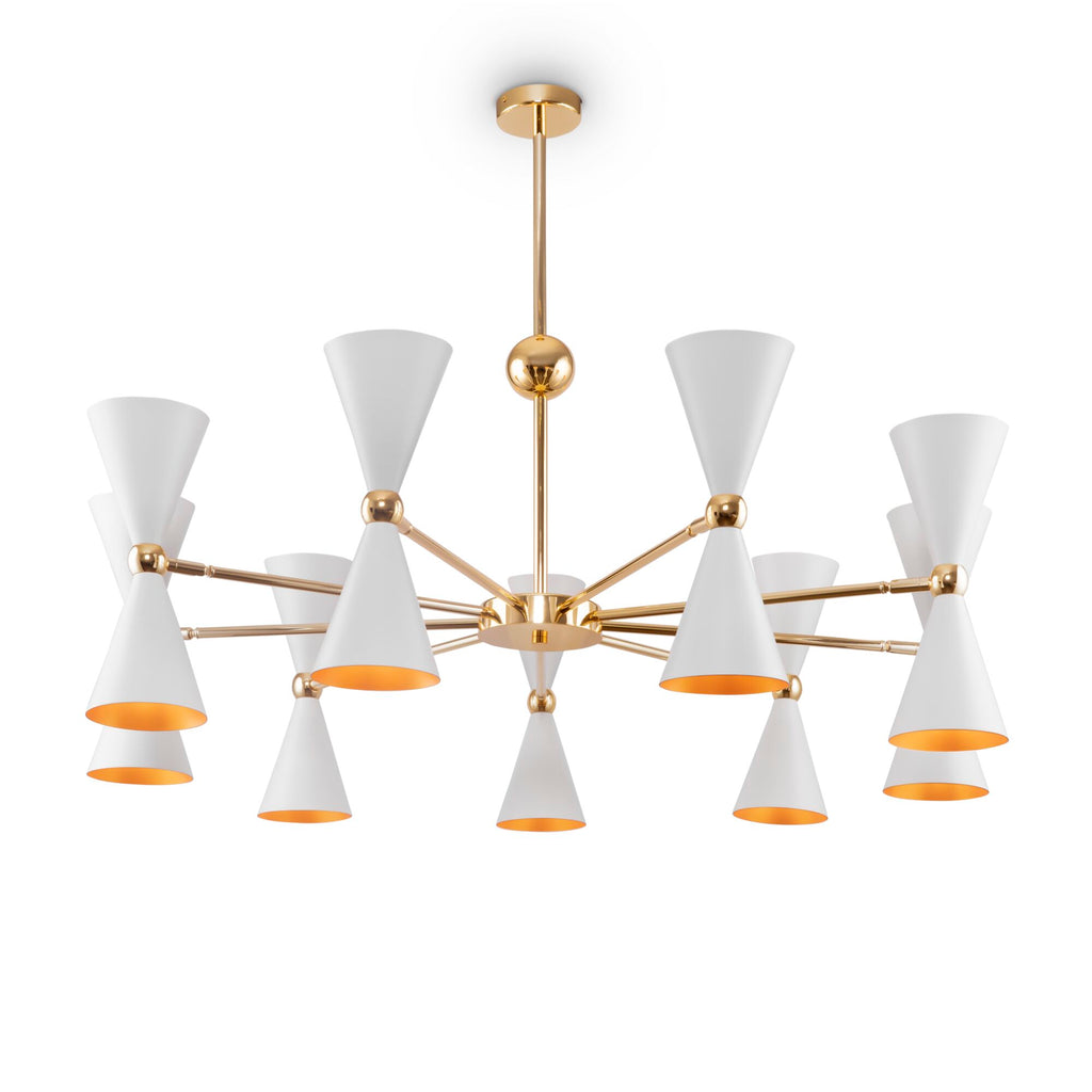Le matériau de la structure et des haut-parleurs - Métal. La couleur de la structure est dorée. La couleur des haut-parleurs - noir et or, blanc et or. Les diffuseurs sont orientables, la lumière est orientable.