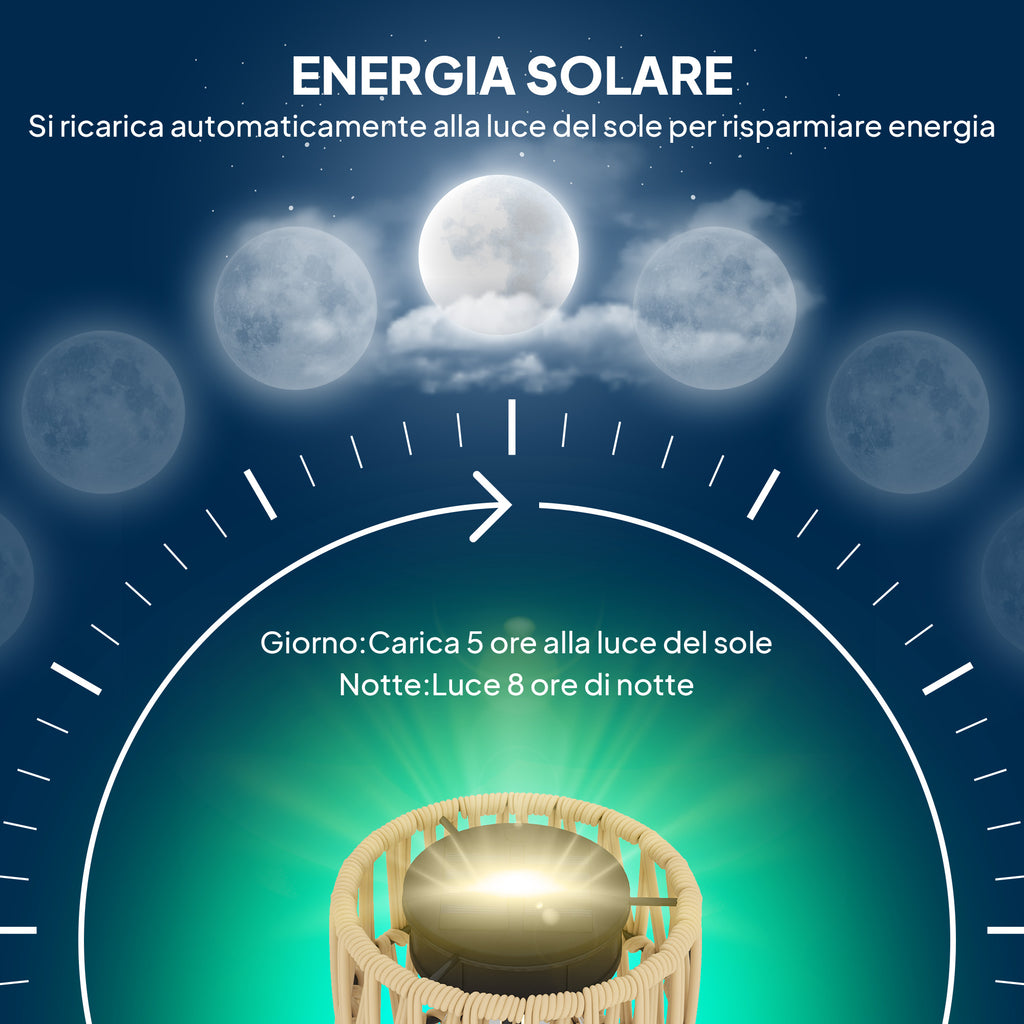 • SEMPRE UTILIZZABILE: Costruita con una struttura in acciaio verniciato a polvere e rattan sintetico, questa lampada da esterno solare unisce l'eleganza classica alla resistenza UV e una protezione IP44 contro l'acqua per una durabilità esterna prolungata