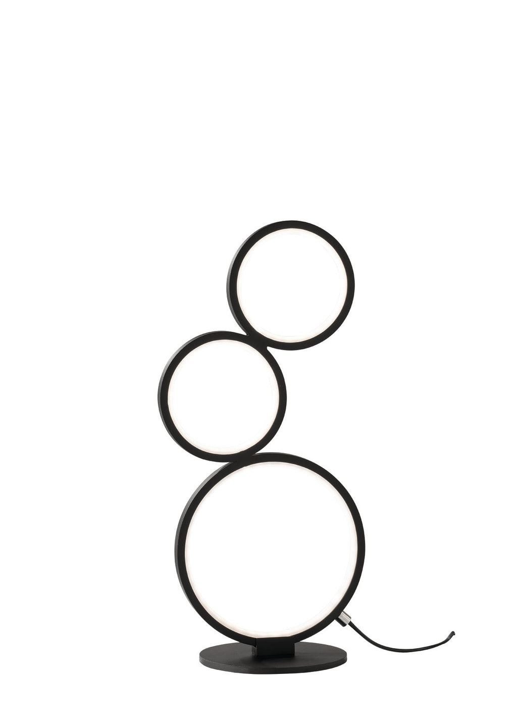 Rondo Lampe De Table Led 3 Cercles Métal Noir Mat Avec Variateur H. 45Cm