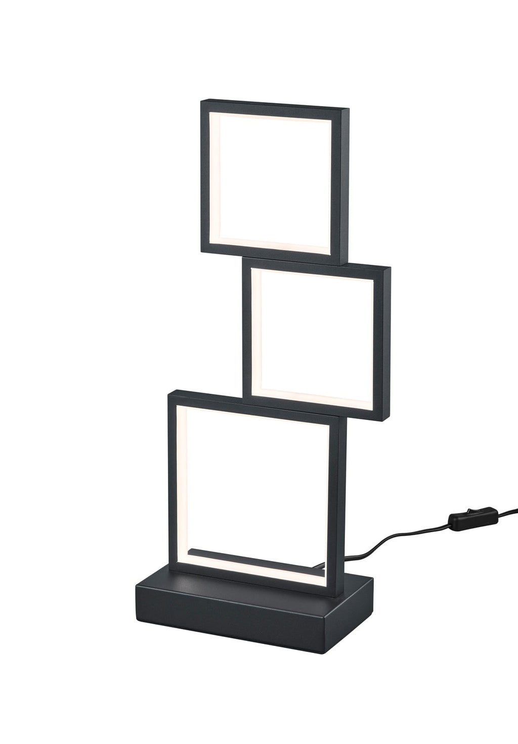 Sorrento Lampe à Poser Led 3 Carrés Noir Avec Réglage Intensité Sur Câble H.50Cm