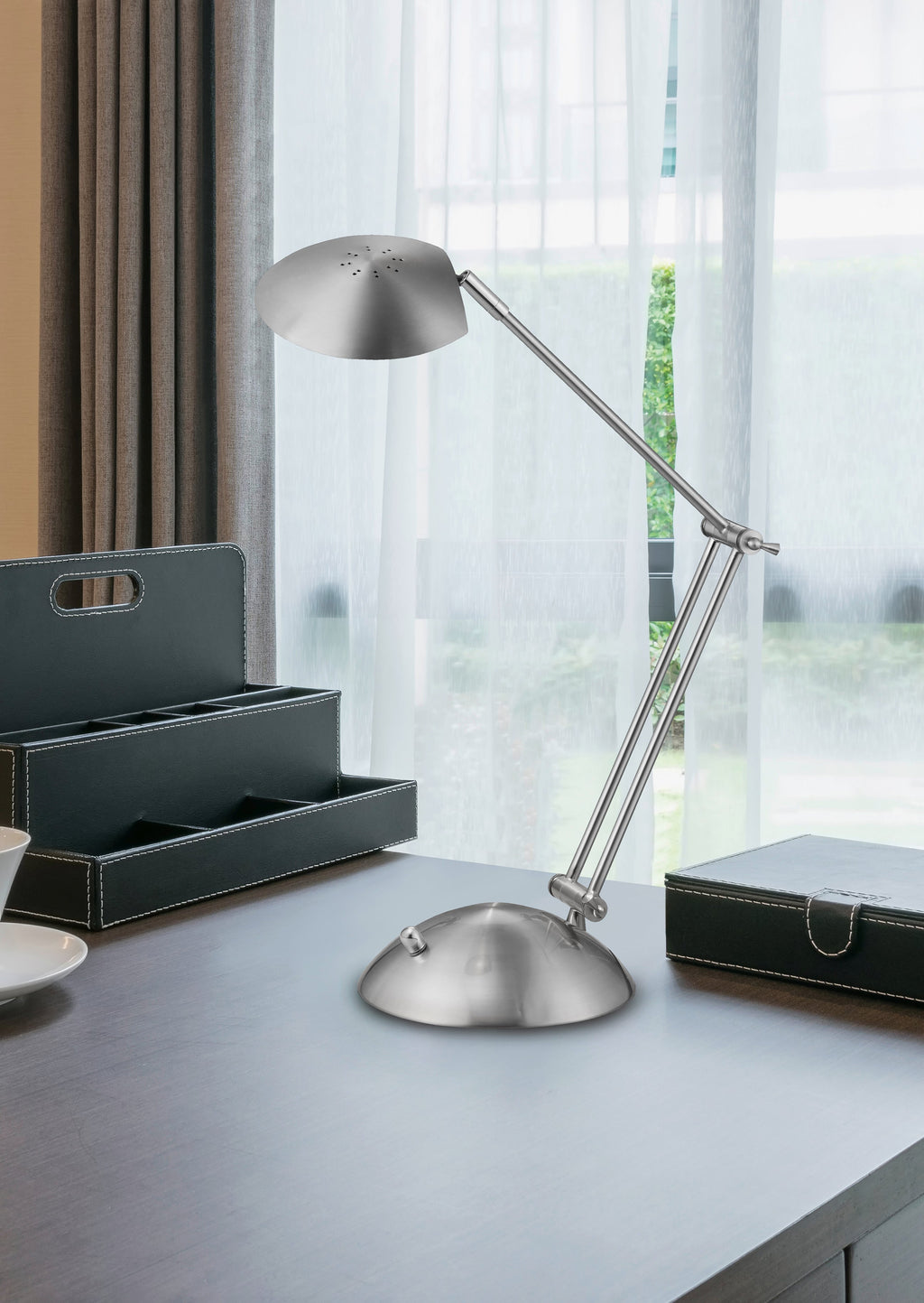 Calcio Lampe D'étude Led Réglable Métal Acier Satiné Dimmable H. 43Cm