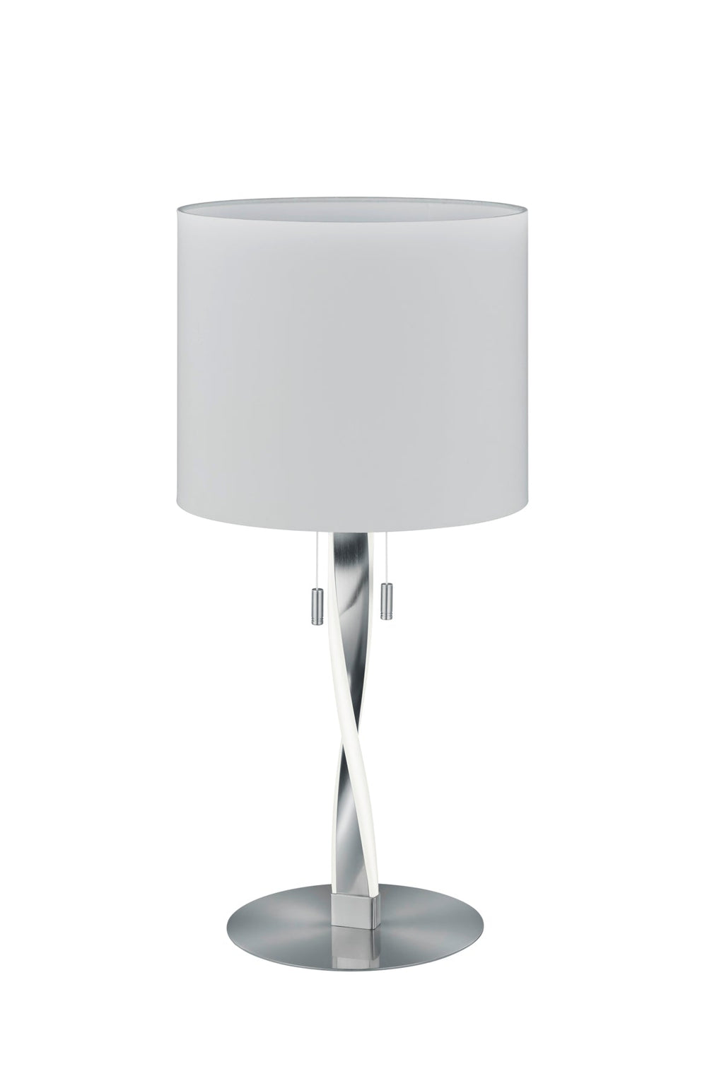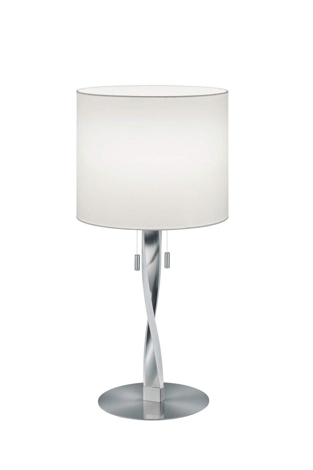 Nandor Lampe De Table Avec Abat-jour Blanc Et Tige Hélicoïdale Illuminée En Acier Satiné Avec Interrupteurs Séparés H.62Cm