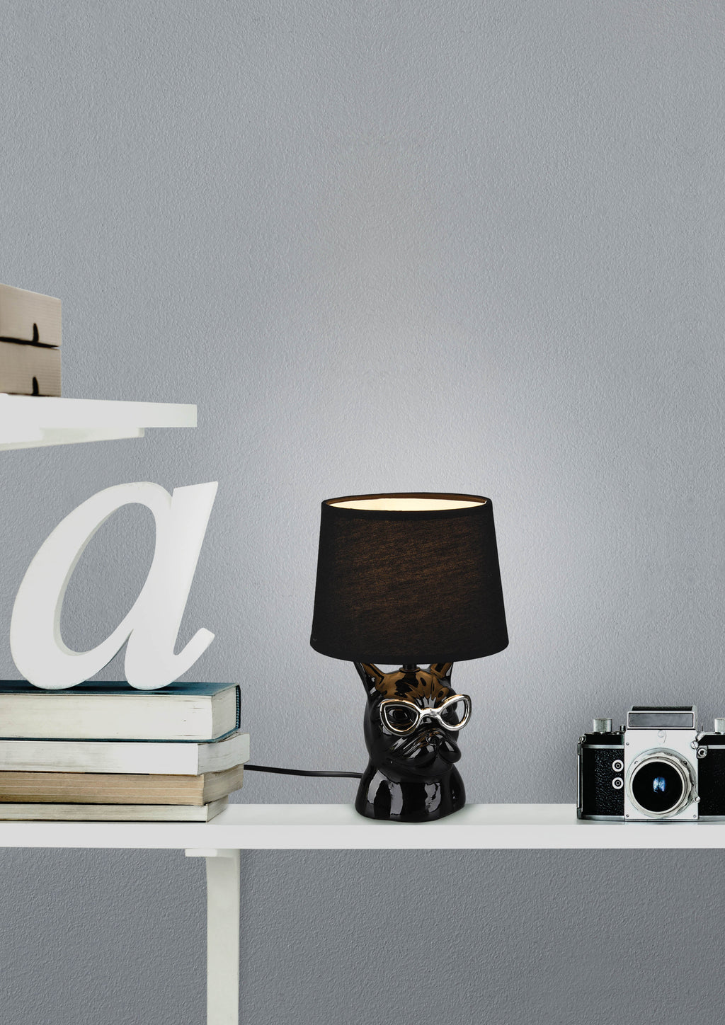 Dosy Lampe De Table Céramique Noire Bouledogue Avec Verres H. 29Cm