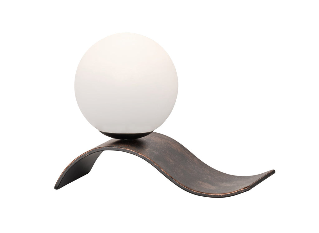 Lara Lampe à Poser Sphère Verre Blanc Socle Vague Métal Cuivre Antique H. 21Cm, L. 29Cm