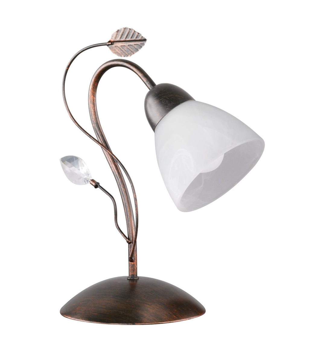 Lampe de Table Traditio Met.Rust Ant. Verre Blanc Avec Gemme Transparente H. 32