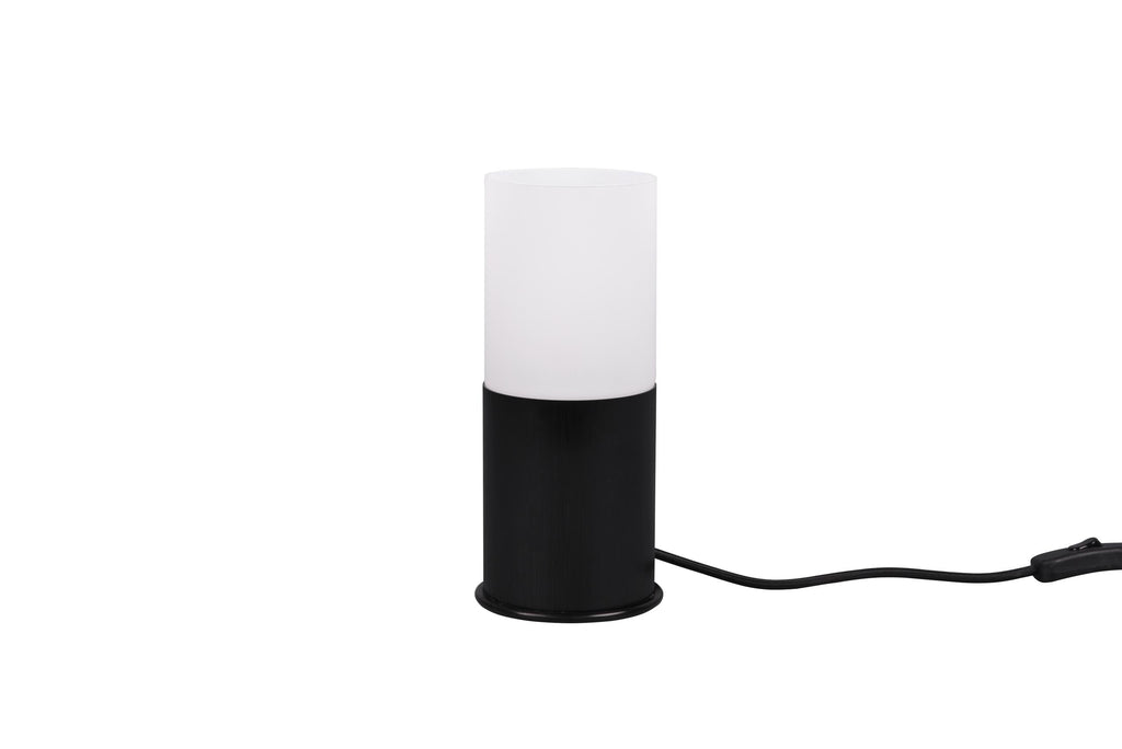 Lampe De Table Robin Cylindre Métal Noir Et Verre Blanc Mat H. 25,5Cm