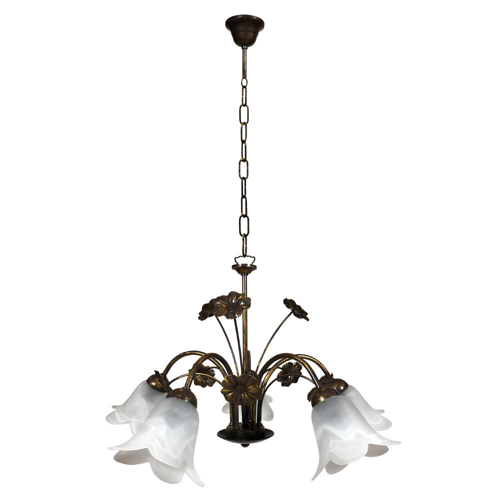 Lustre 5xE14 Cadre Or Marron Verre Albâtre Blanc E-Energy Vera