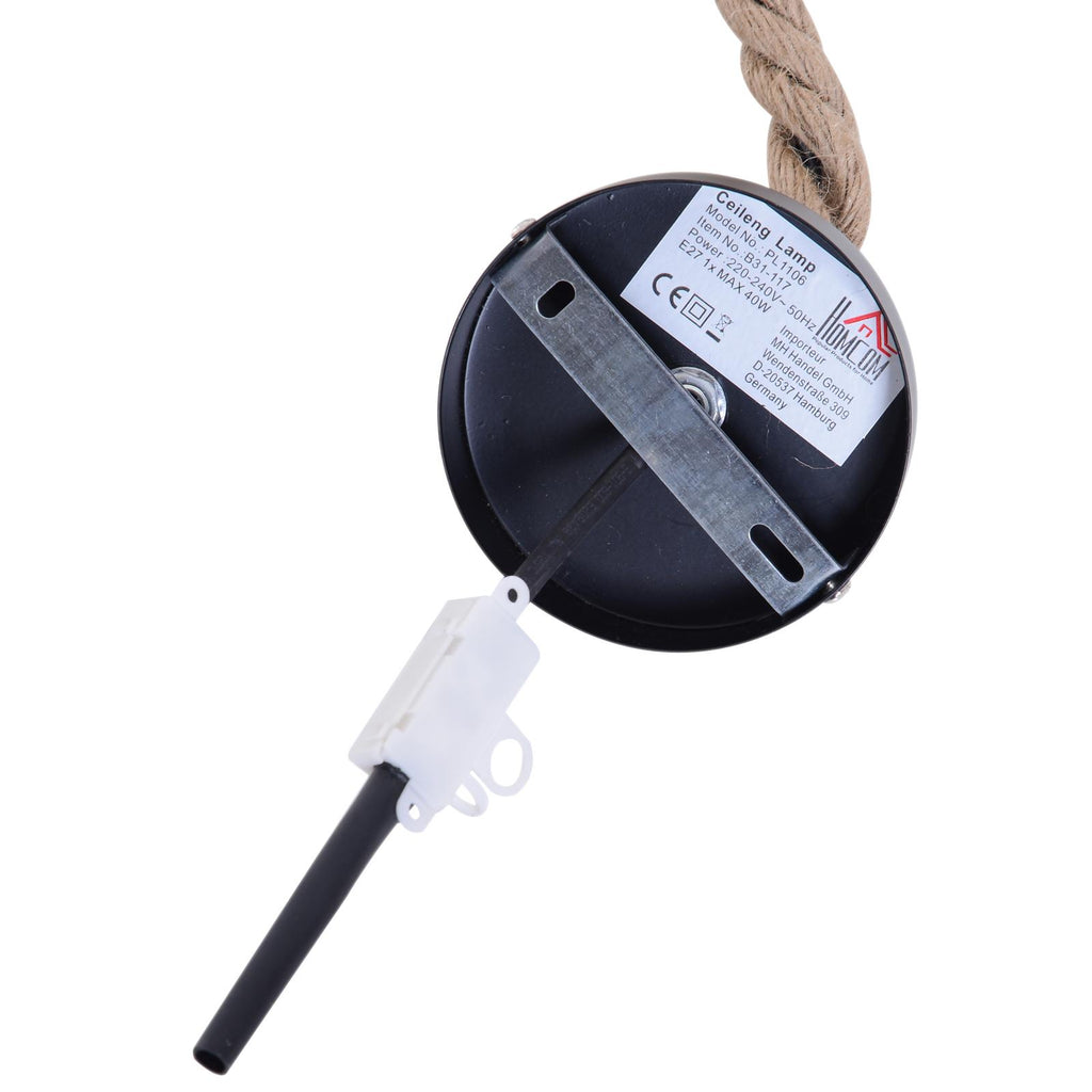 Lustre Suspension avec Corde de Chanvre Longueur Réglable Beige Ø35x160H cm