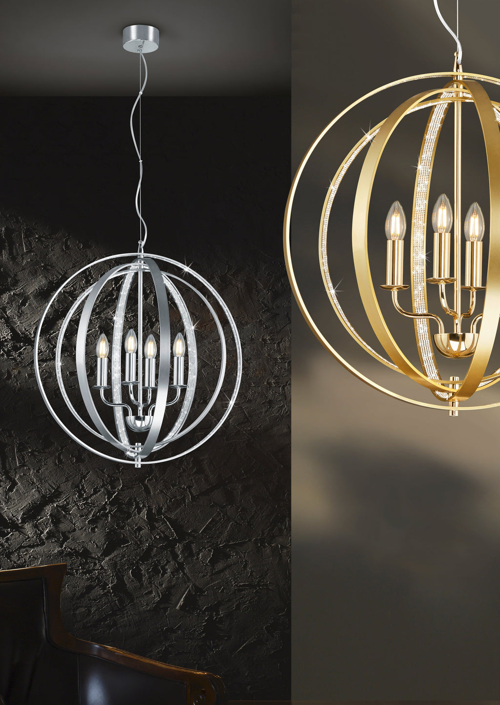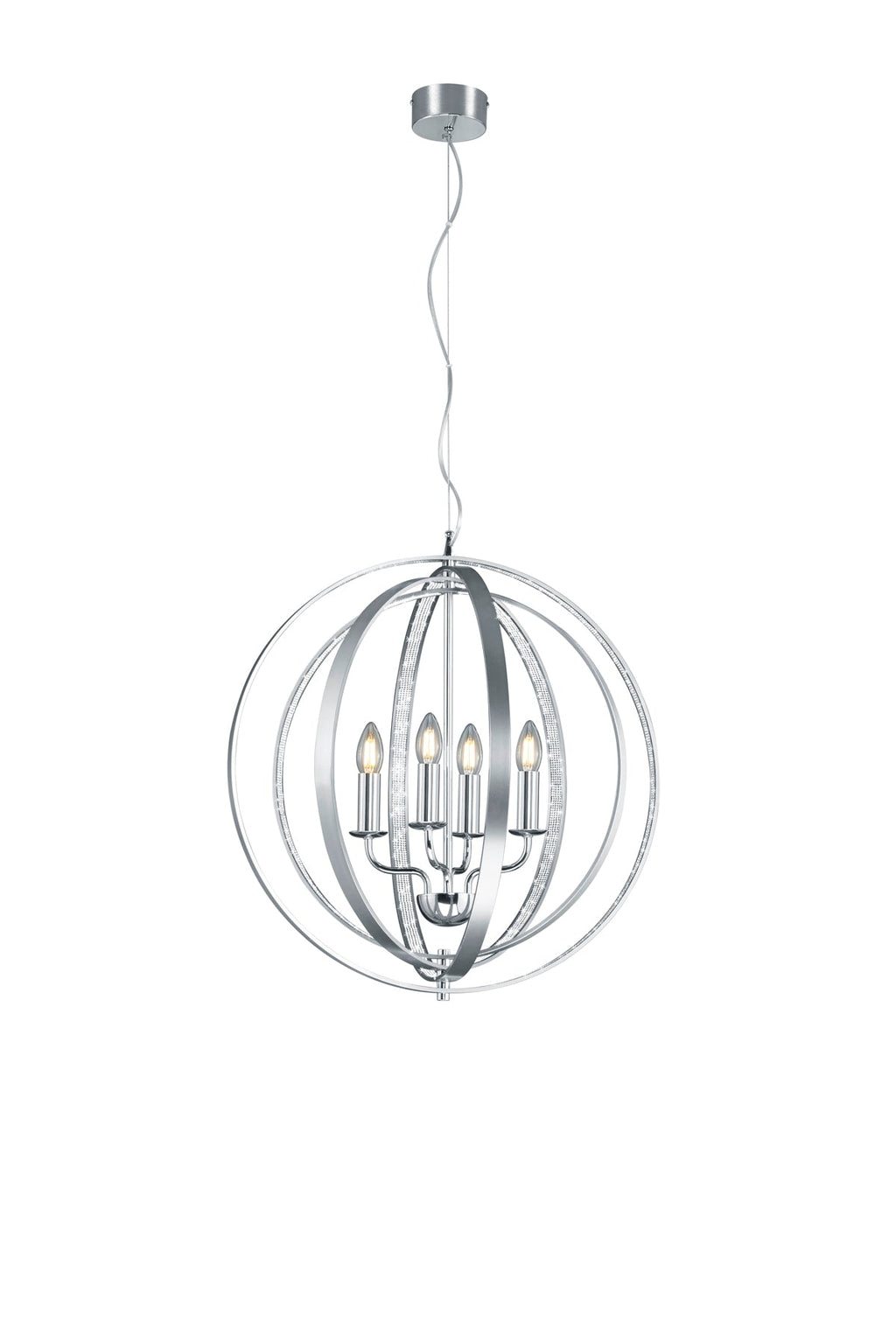 Bougie Suspension 4 Cercles Ajustables En Métal Aluminium Satiné Avec Décoration Intérieure En Cristal D. 56Cm, H.150Cm