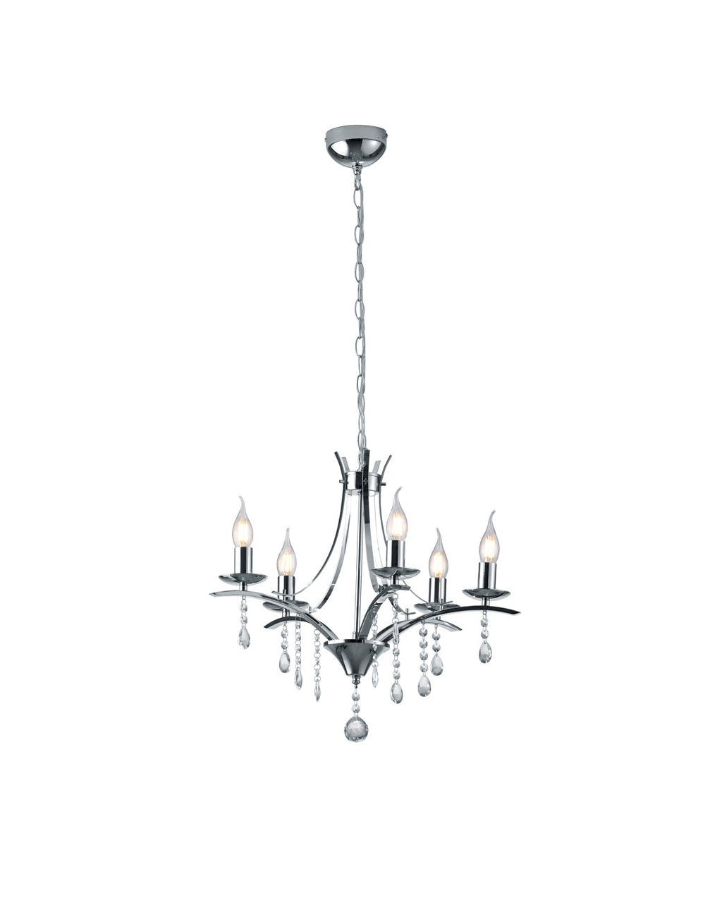 Lucerna Lustre 5 Lumières Métal Chromé Et Pampilles Transparentes D. 51Cm