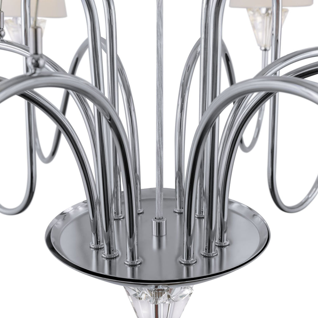Les abat-jour de Cotonee blanc. La structure en métal chromé. La série comprend des plafonniers à 12 et 9 lumières, des lampes de table et des appliques à 1 et 3 lumières.