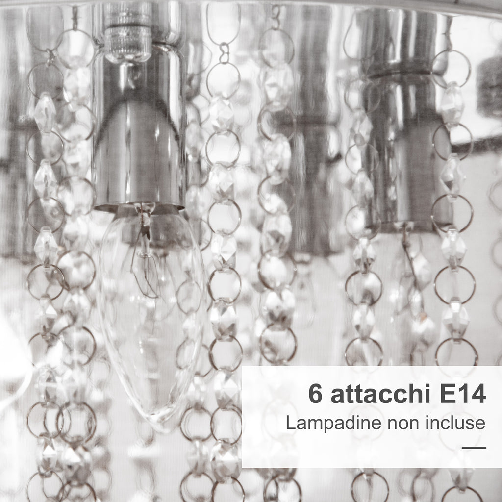 Lustre moderne avec gouttes Ø40x33 cm E14 abat-jour 40W en tissu argenté