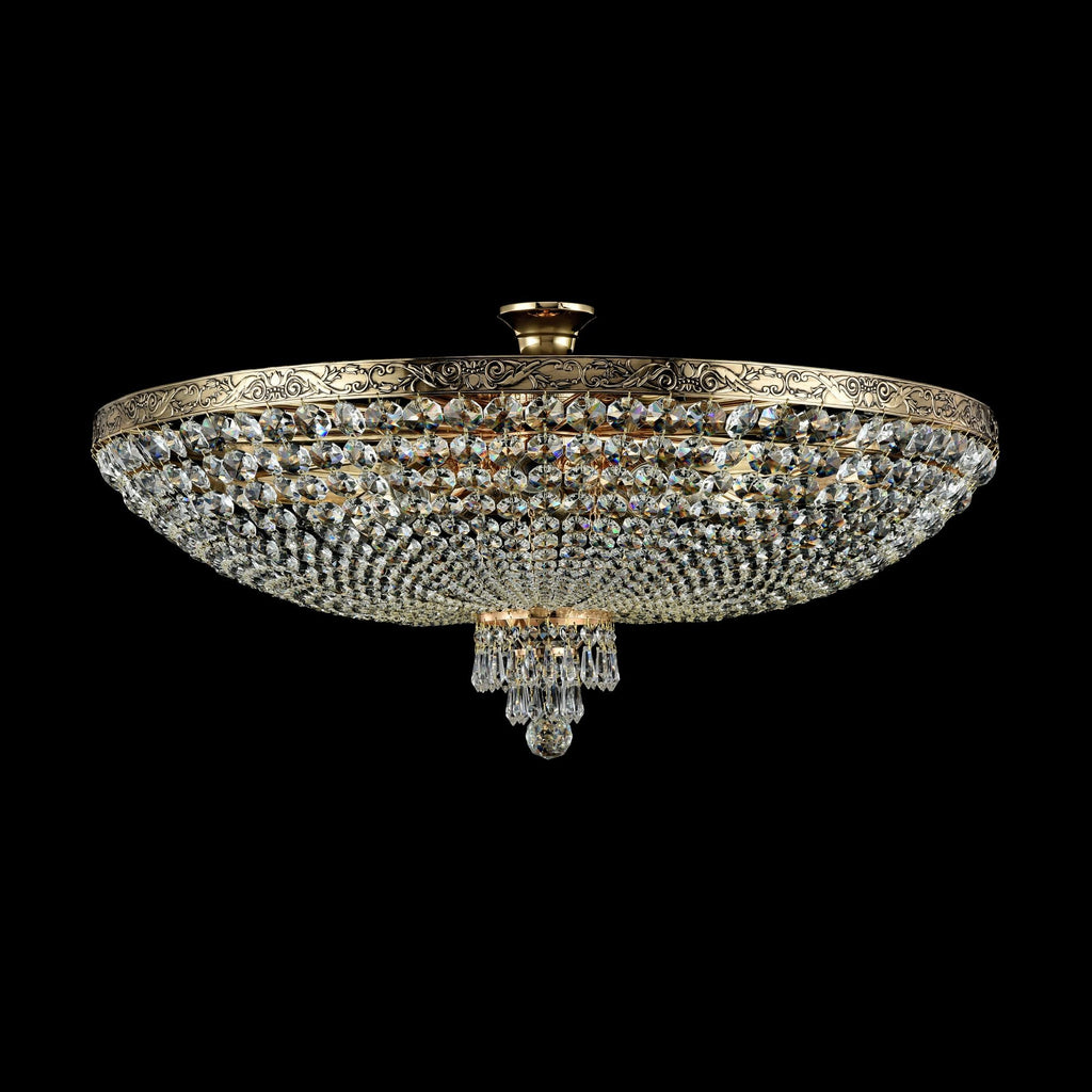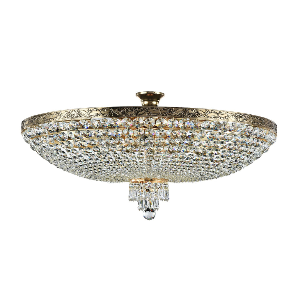 Structure en métal, finition laiton. Cristaux de différentes tailles et formes.