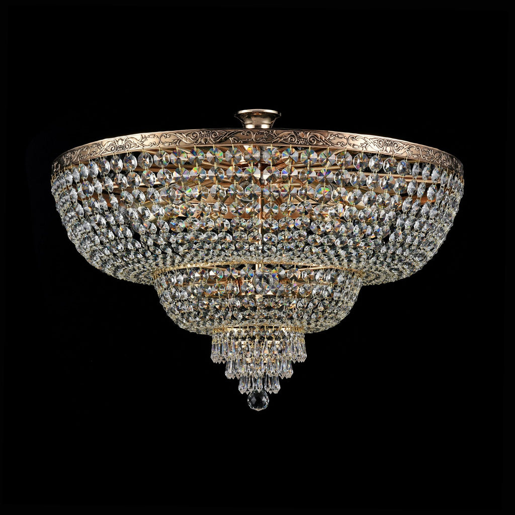 Structure en métal, finition laiton. Cristaux de différentes tailles et formes.