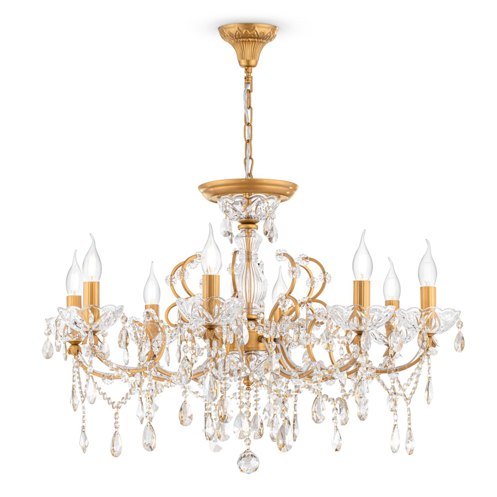 Structure en métal, finition dorée. Pendentifs en cristal.