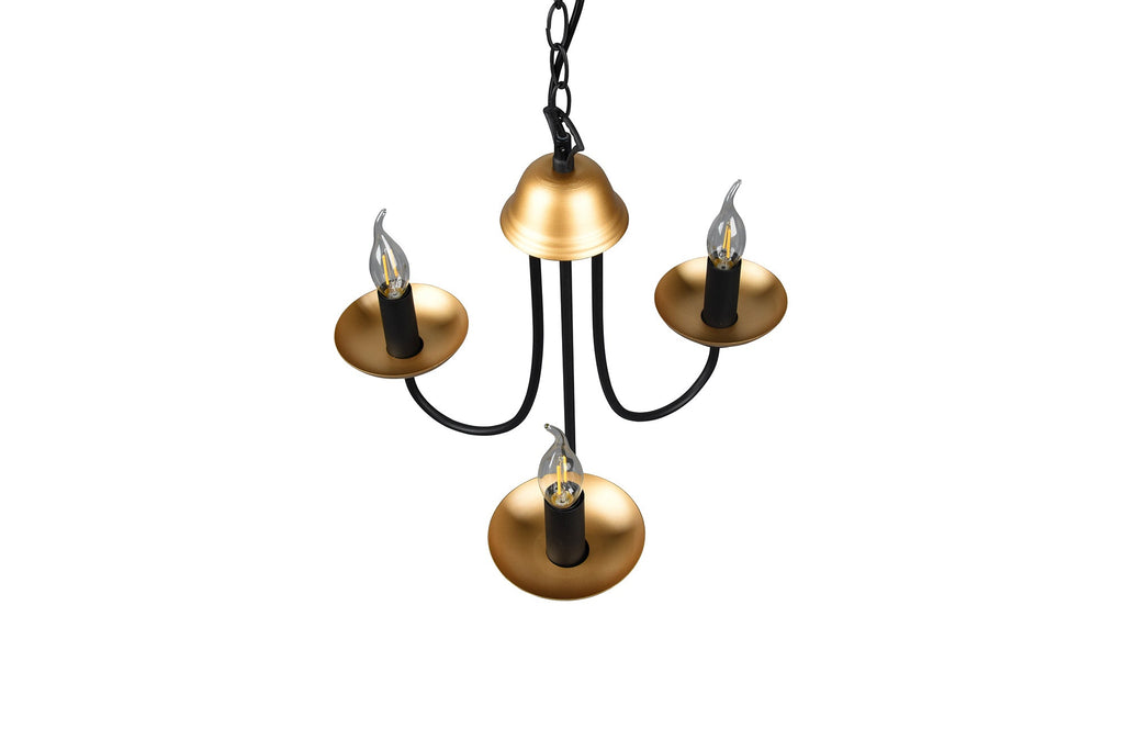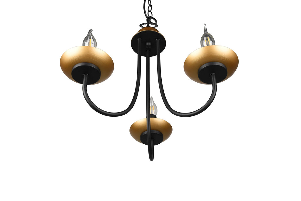 Livia Lampadario Metallo Nero e Oro Anticato 3 Luci D. 47Cm