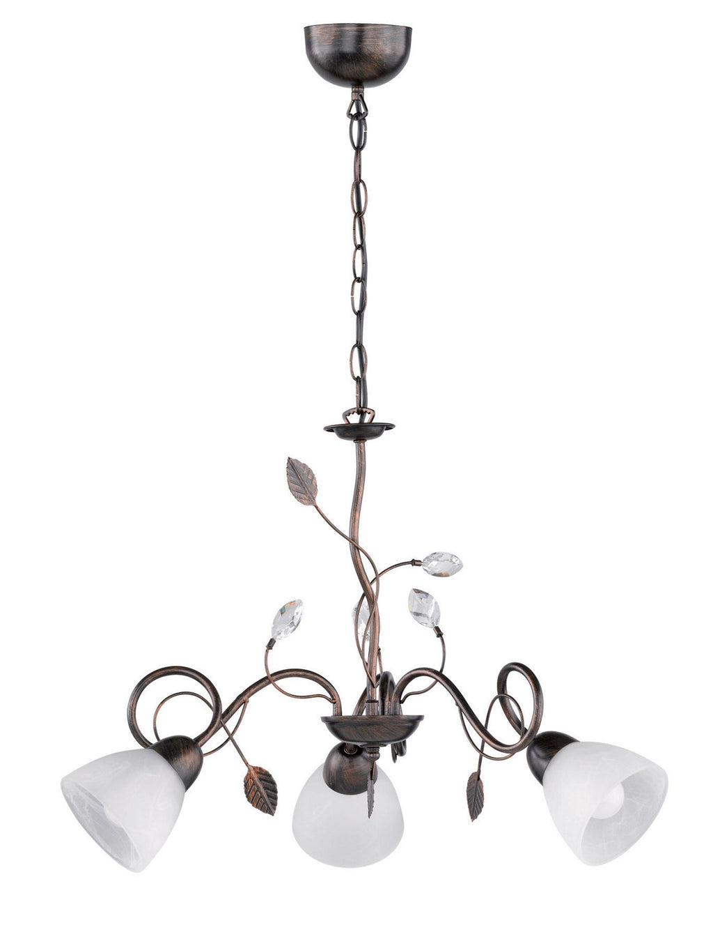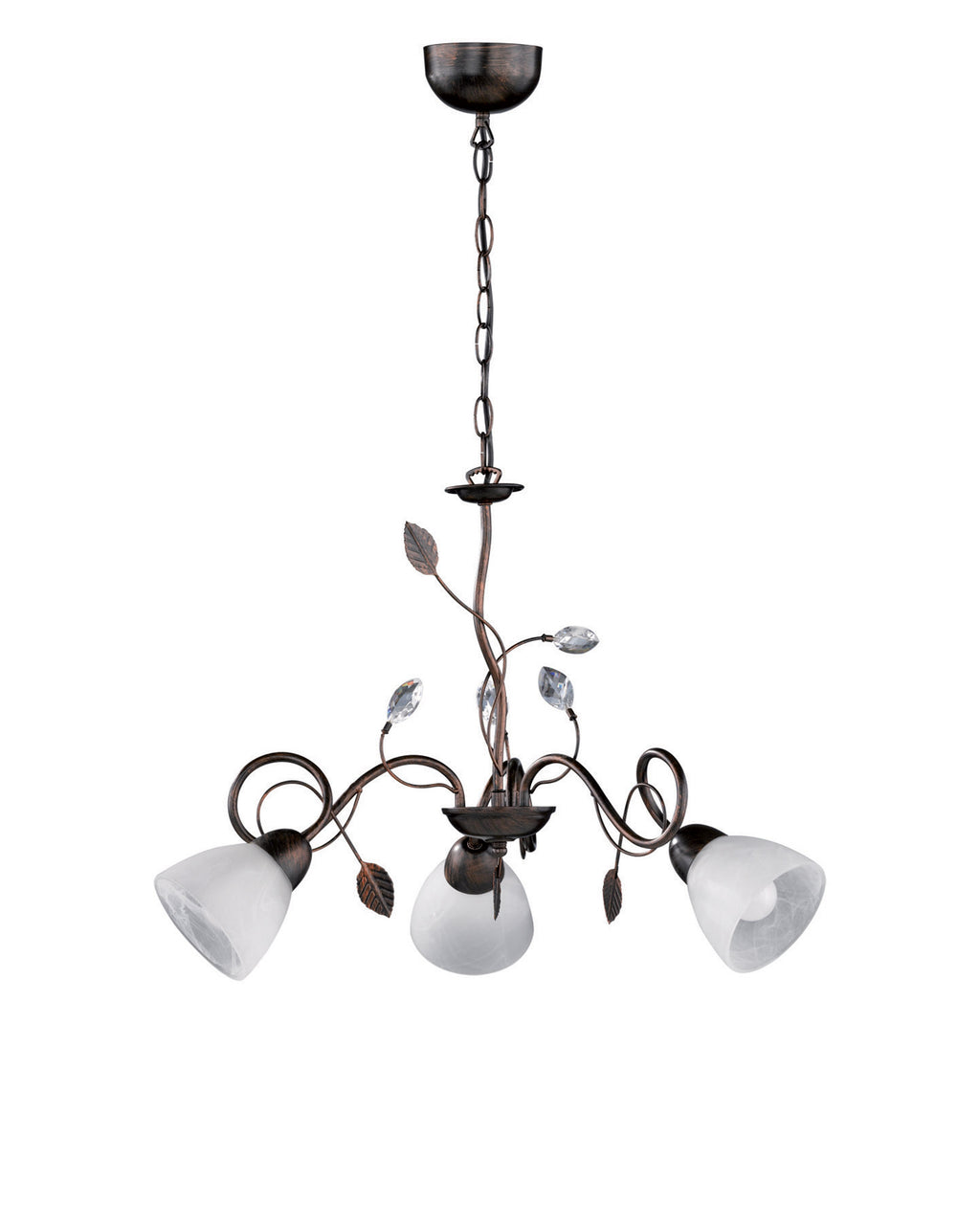 Traditio Lampadario 3 Luci Met.Ruggine Ant. Vetri Bianchi con Gemme Trasparenti D.70
