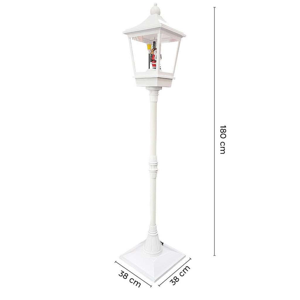 Fabriqué en plastique blanc et ABS et d'une hauteur de 180 cm, il contient le Père Noël et la neige à l'intérieur de la lanterne. Une fois activé avec l'interrupteur au bas de la lanterne, il s'allumera, jouera de la musique et la neige se déplacera créant un effet vraiment impressionnant.