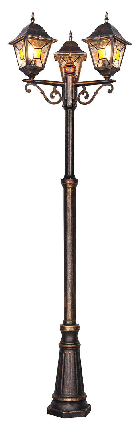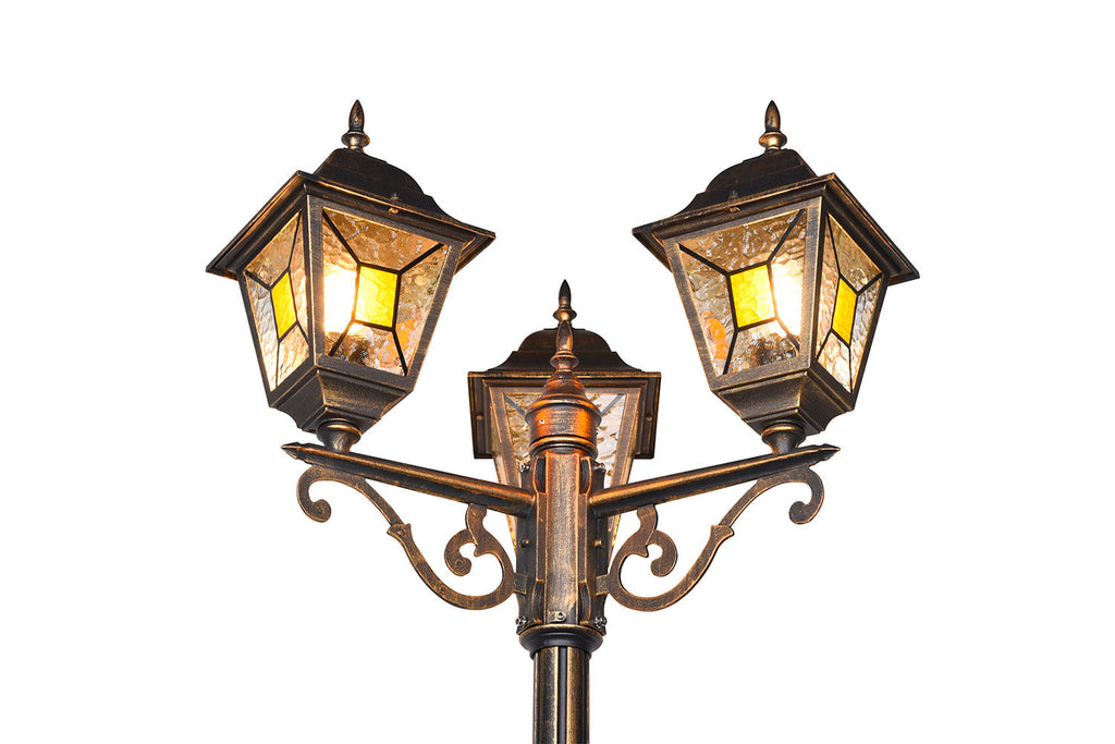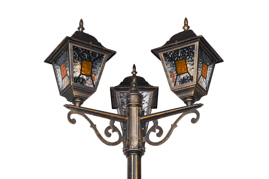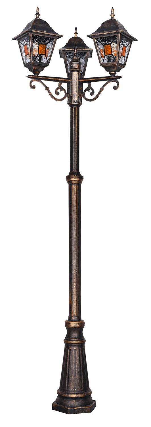 Imperia Palo Alto 3 Lanterne Da Esterno 4 Lati Fusione di Alluminio Ruggine e Vetro Verniciato Effetto Ghiaccio Ed Inserto Giallo H. 240Cm Ip44