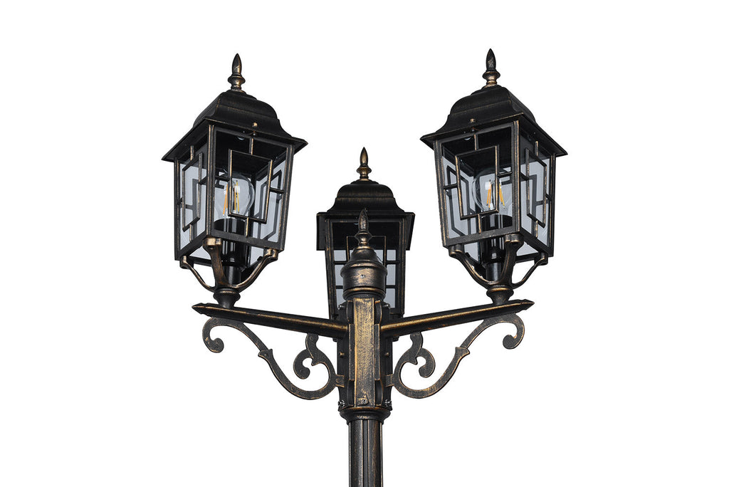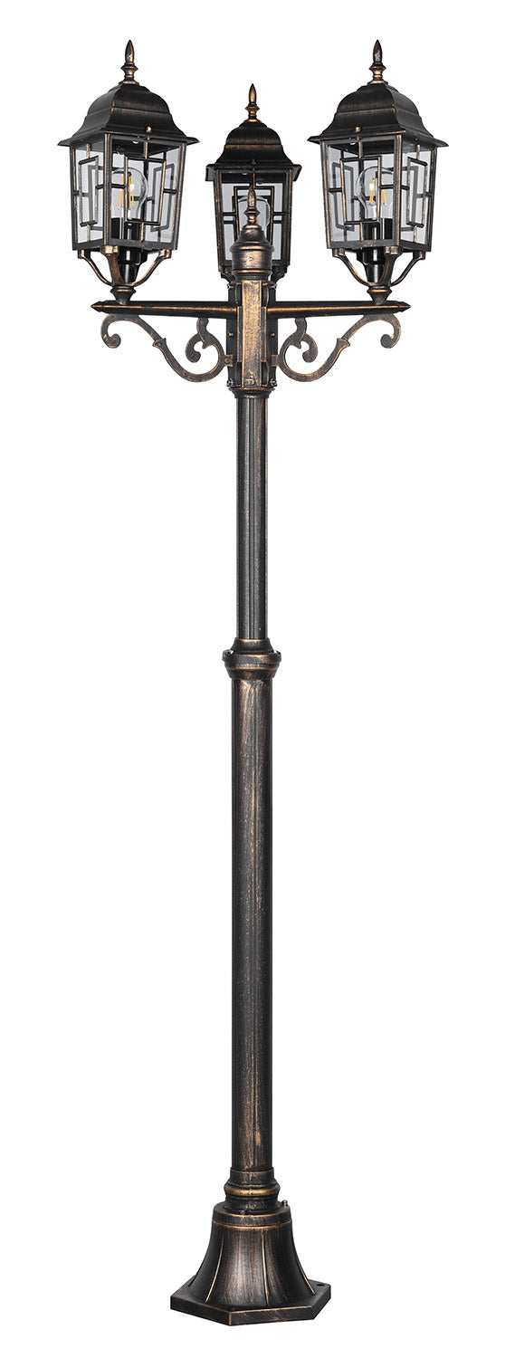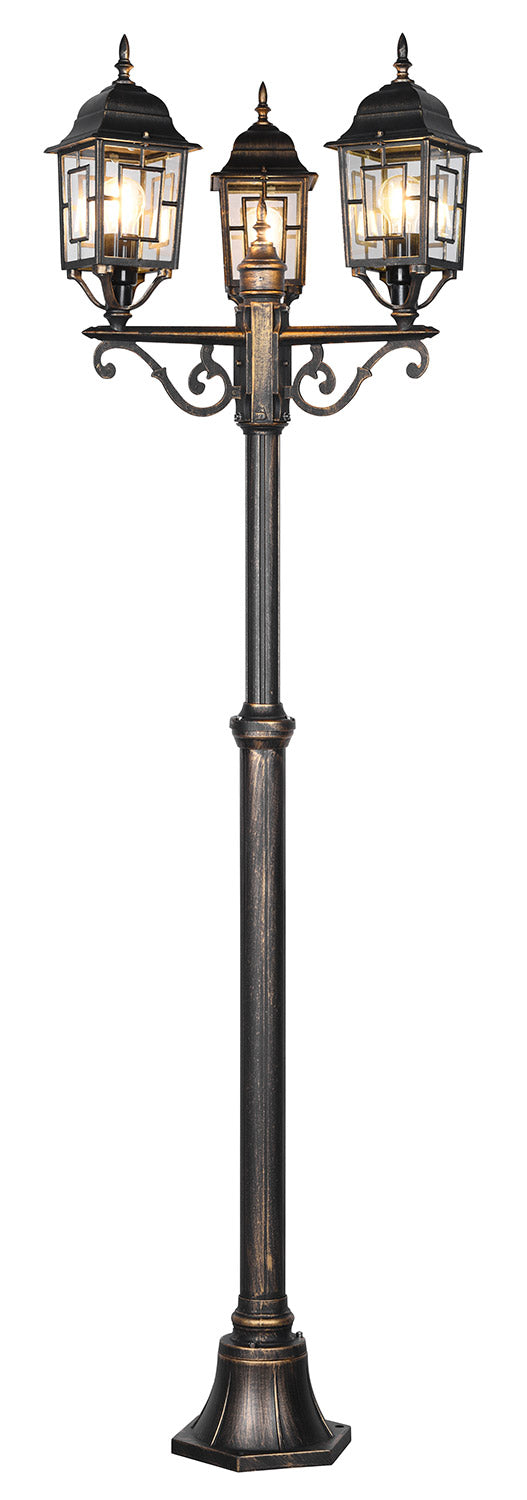 Volturno Palo Alto 3 Lanterne Da Esterno 4 Lati Fusione di Alluminio Ruggine con Decoro in Fusione Sul Vetro e Vetro Trasparente H. 200Cm Ip44