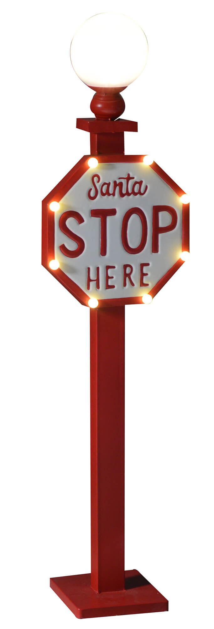 - Lampadaire extérieur avec écriture du Père Noël STOP Here