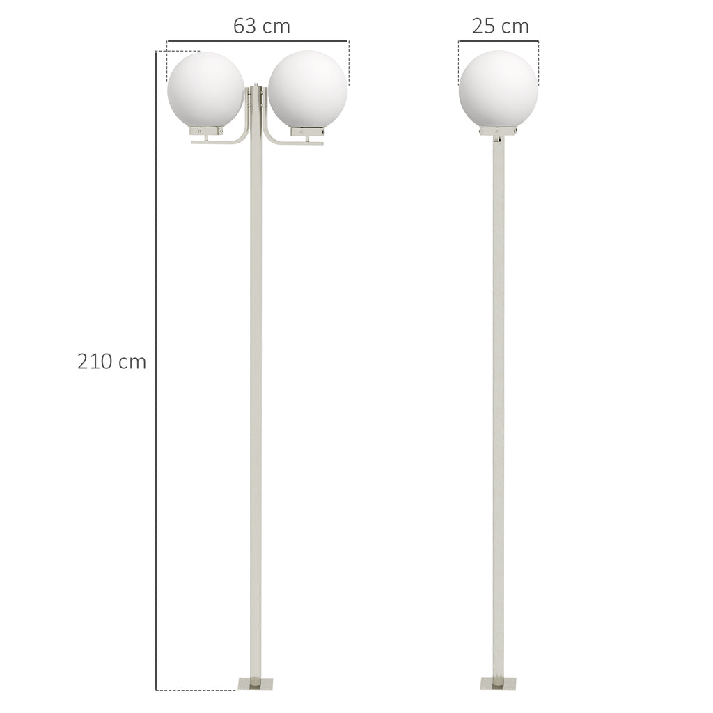 Lampione da Giardino con Paralumi a forma Sferica 63x25x210 cm in Acciaio Inox e Acrilico Argento