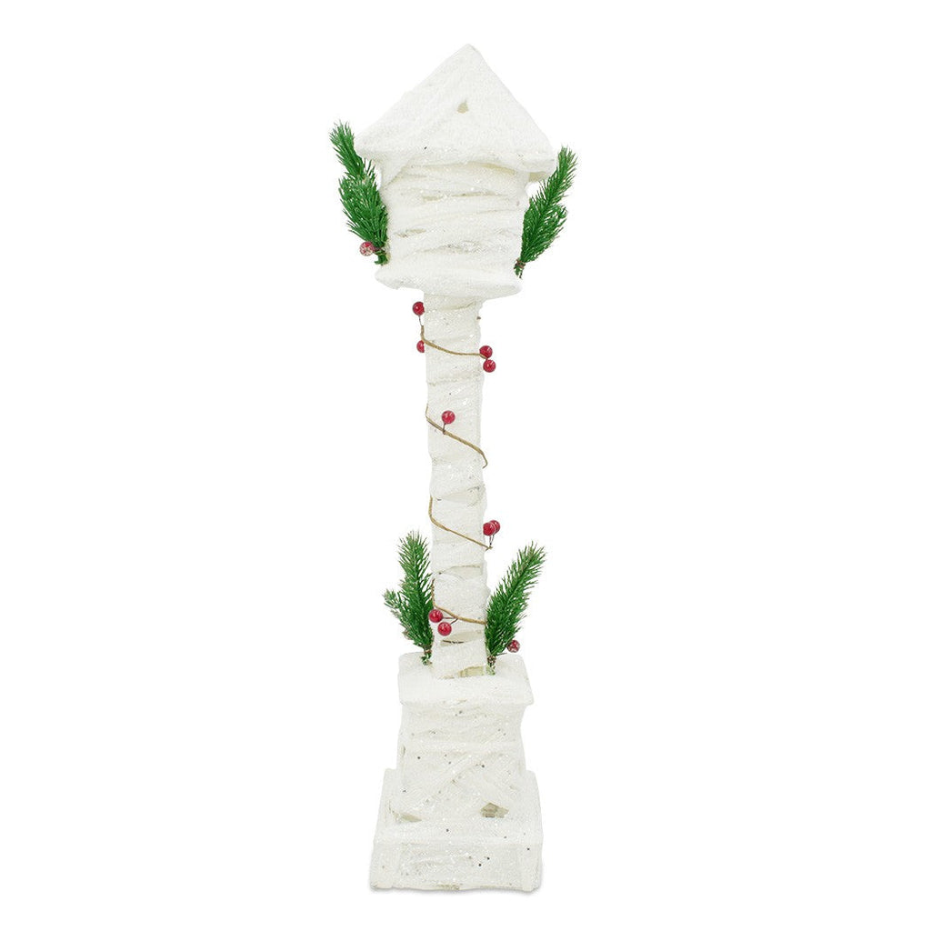 Lampadaire de Noël 60H cm avec entrelacs blancs à paillettes et mini lucioles