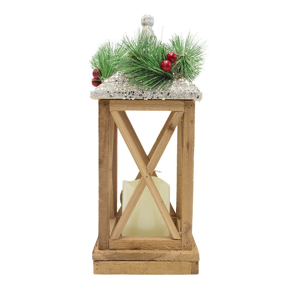 Lanterne avec lumière de Noël en bois avec lumière led et paillettes