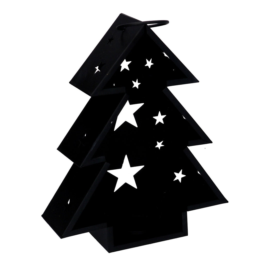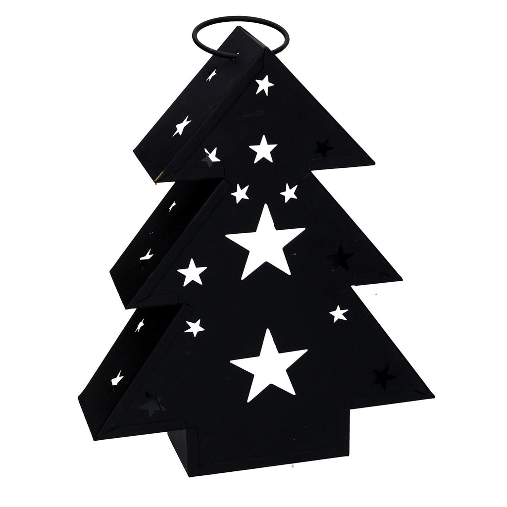 - Lanterne métal sapin noir 27x7.5xh32.5 cm
