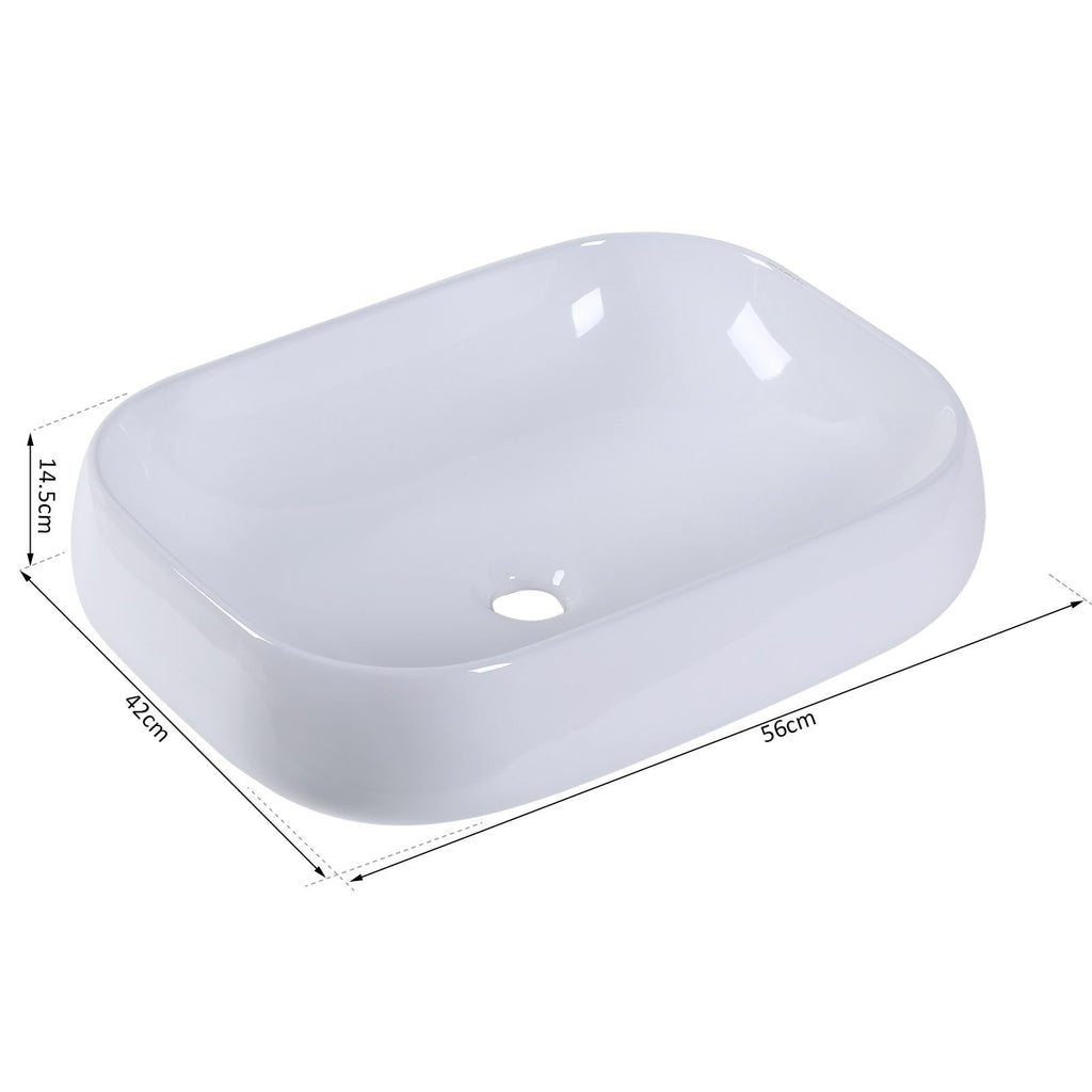 Lavabo à poser rectangulaire en céramique émaillée blanche 56x42x14,5 cm