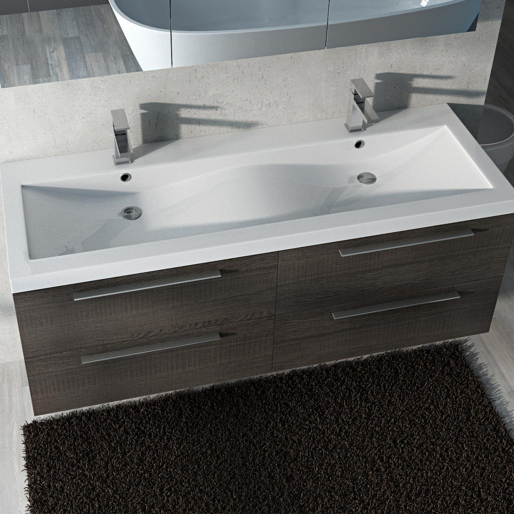 Lavabo salle de bain double acrylique blanc 144cm Fosterberg Porto 5