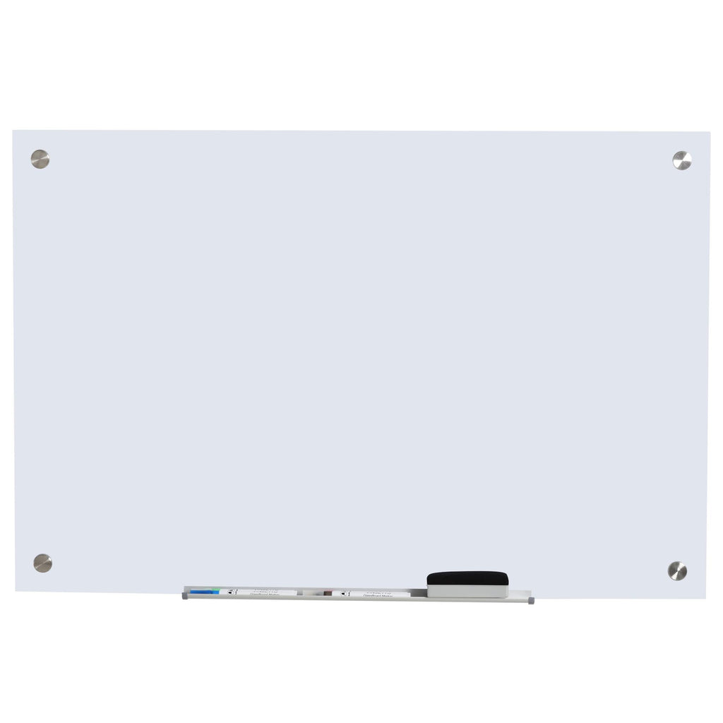 Tableau blanc mural en verre 90x60x0,4 cm avec marqueurs et gomme