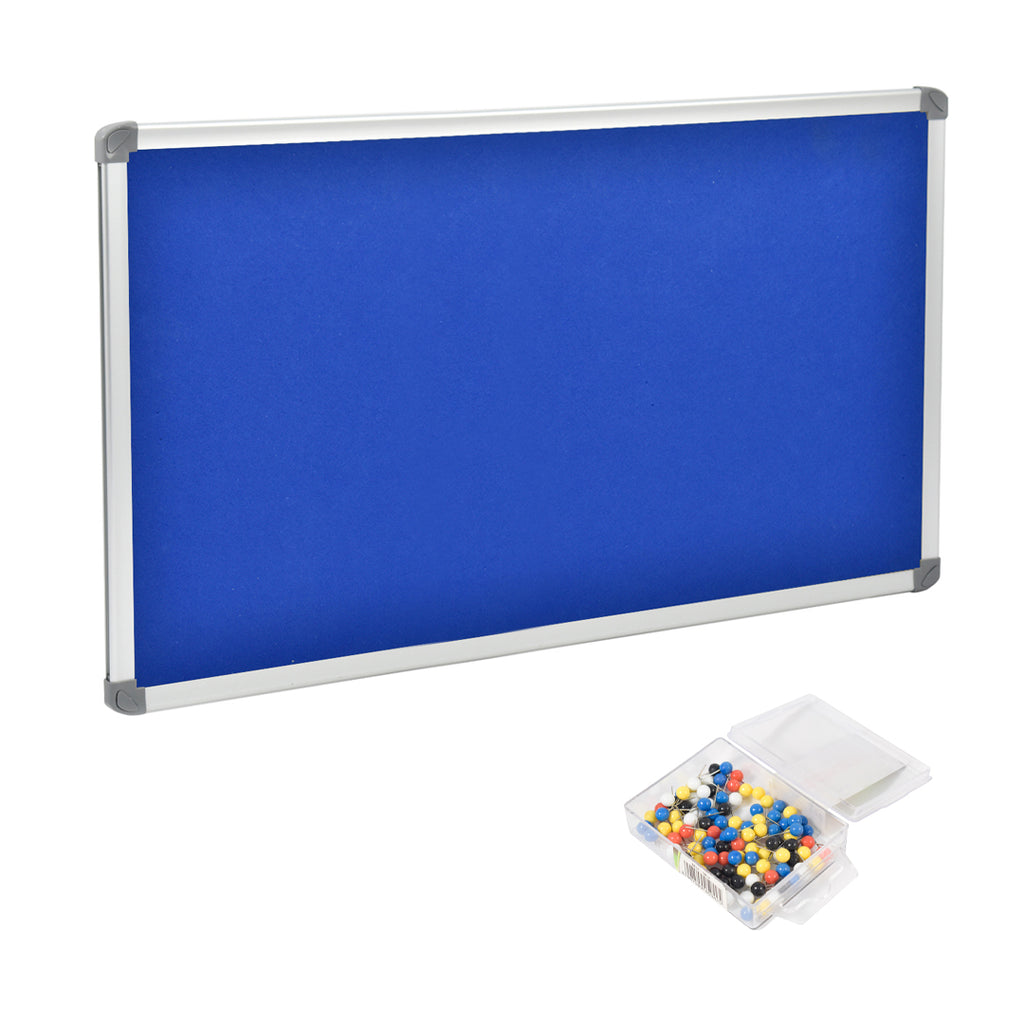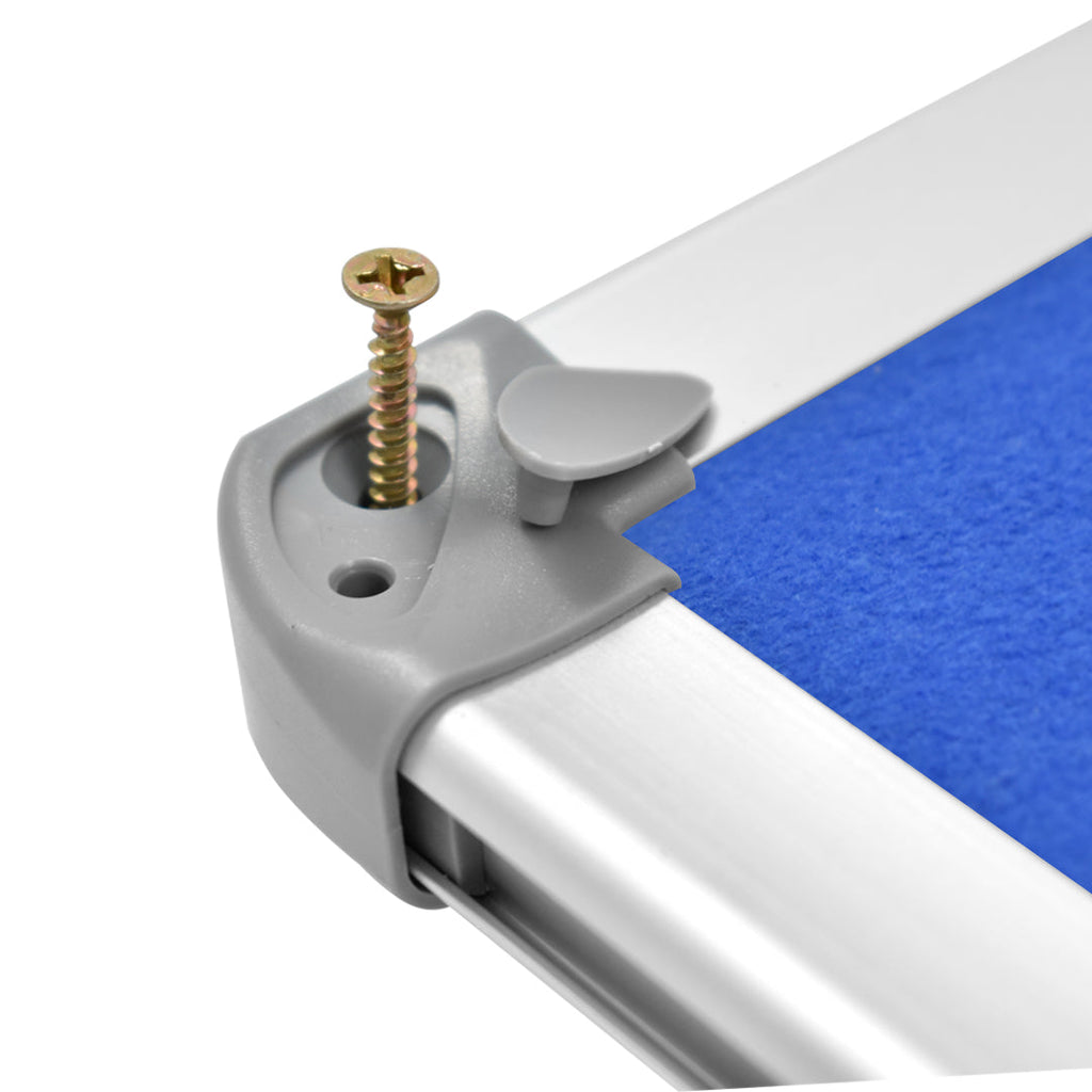 La lavagna da parete è realizzata in alluminio anodizzato silver, conferendo resistenza e durata nel tempo. Gli angoli di protezione in ABS assicurano un'ulteriore protezione dagli urti e dalle eventuali cadute. La superficie in feltro blu è appositamente progettata per essere utilizzata con puntine ferma fogli, consentendo di fissare facilmente documenti e appunti. Grazie al suo design versatile, può essere posizionata sia in verticale che orizzontale. Il kit di fissaggio a muro è incluso, rendendo l'installazione rapida e semplice. Le dimensioni di 90x60 cm offrono ampio spazio per scrivere e visualizzare informazioni.