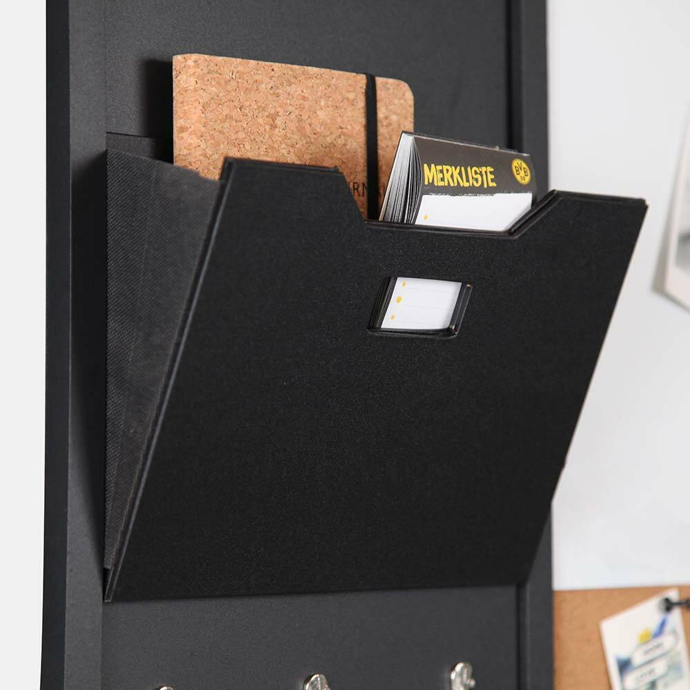 Questa fantastica Bacheca è super accessoriata! da una parte possiamo trovare una partica lavagna magnetica con sezione in sughero e dall'altra una lavagna nera dotata di scomparto portadocumenti e di 3 ganci portachiavi in questo modo avrai sempre tutto a portata di mano prima di uscire, dai tuoi impegni giornalieri alle cose da portare con te.