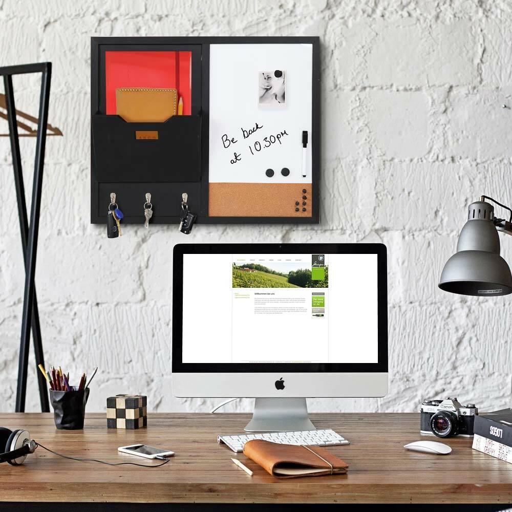 Lavagna Magnetica Bacheca Memo in Sughero Combinata con Ganci e Portadocumenti