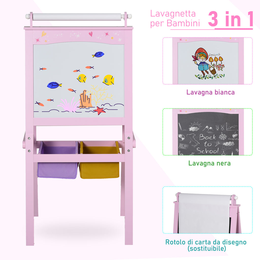 Tableau noir pour enfants 3 en 1 avec chevalet en bois rose