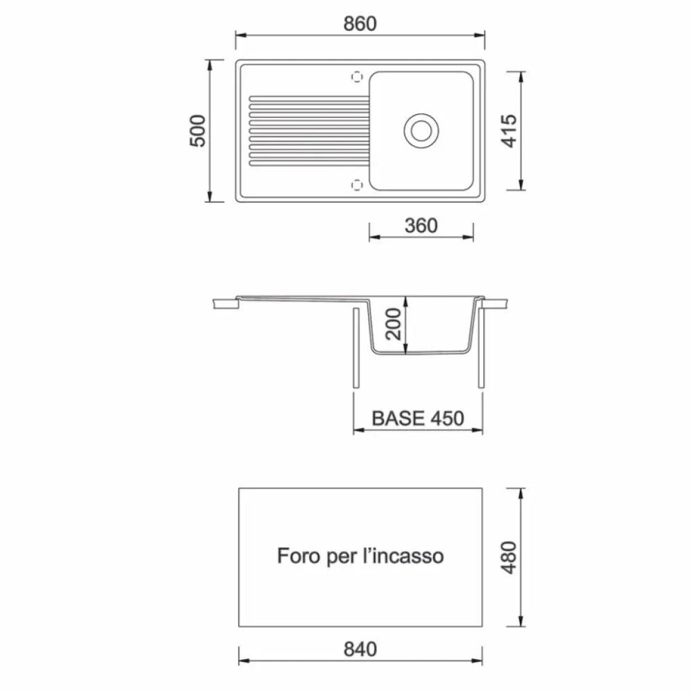 Evier Samet 86x50 réversible 1 égouttoir blanc.