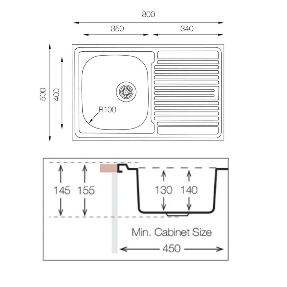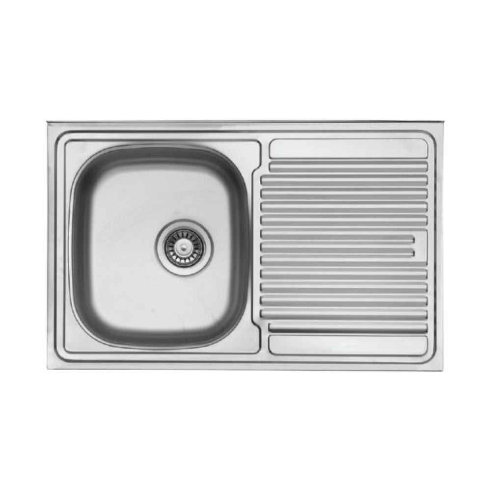 Évier à poser 80x50 cm, 1 cuve et égouttoir droit