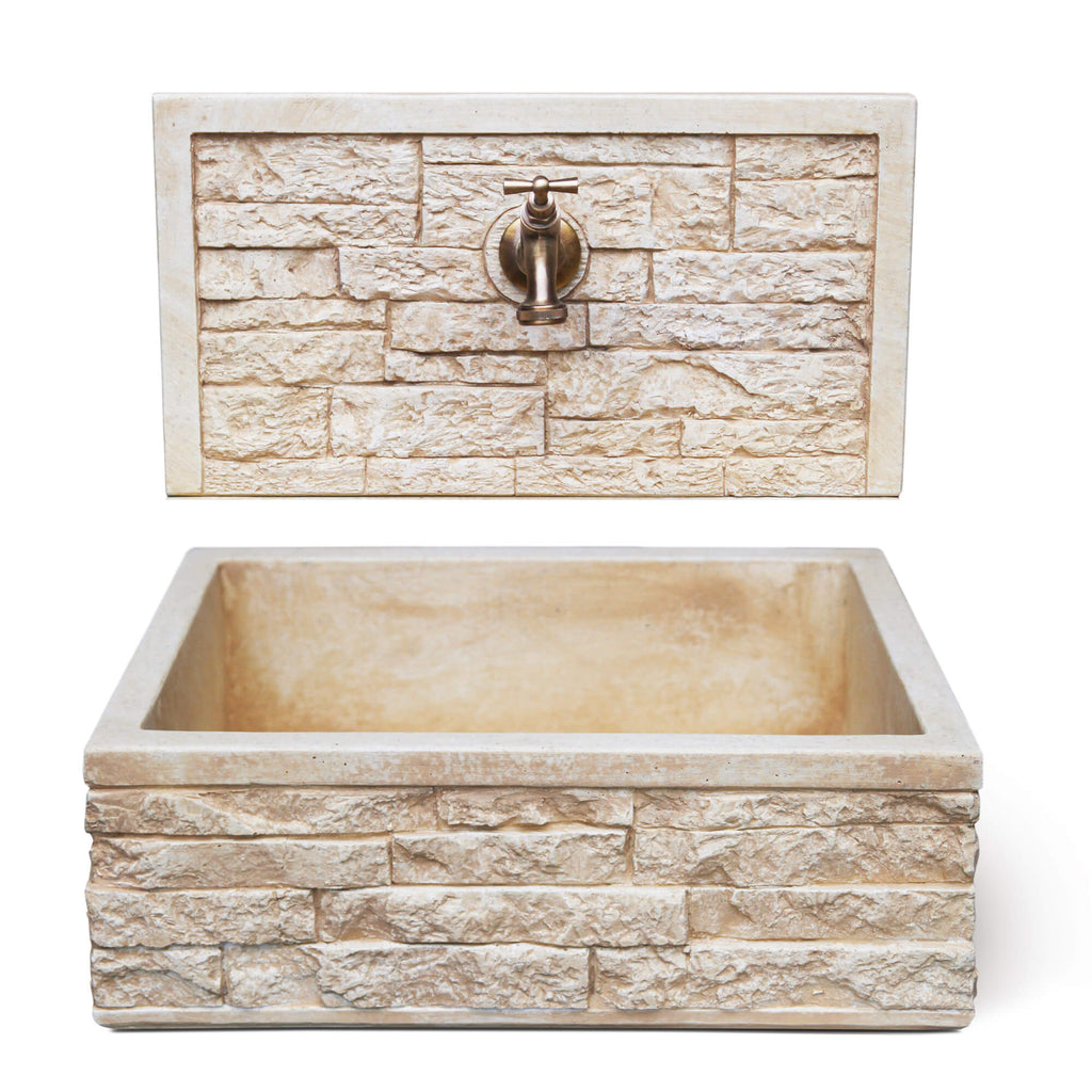 Lavello da Giardino Senza Rubinetto in Cemento Granulato di Marmo Q-Meseta Nocciola